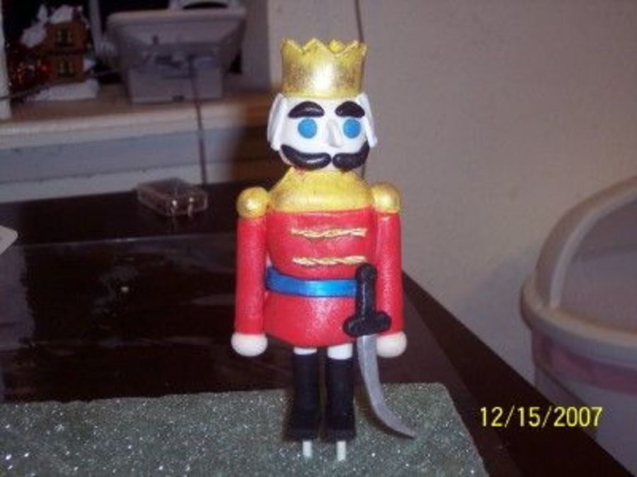 Nutcracker figure I made for a cake I was making for my daughter's dance company Christmas party. The whole thing didn't work out very well as my figures were too big and heavy to stand up, but this was my first attemp at modeling. Lots of things I'll do differently next time!