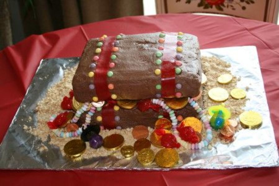 Nephew wanted a pirate themed party so SIL asked me to make him this cake. I wasn't real happy with the "lid" because it didn't stand up better...next time I'll use my own instructions. Iced in chocolate BC and idea taken from the familyfun website