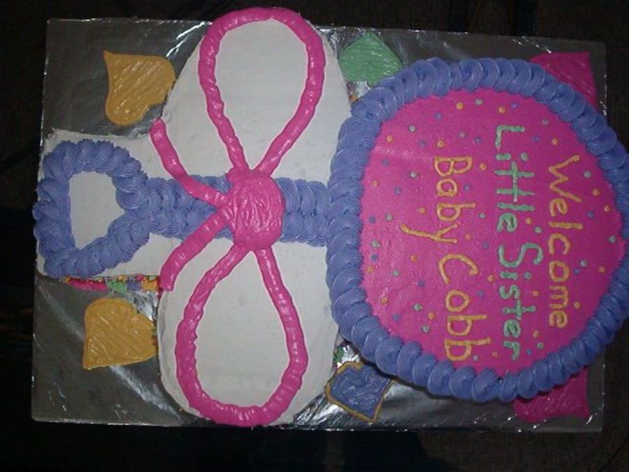 This is my first rattle cake. The lady I did it for was very pleased. I drew out a rattle on wax paper, cut it out then laid it on to p of a 1/2 sheet and cut away.