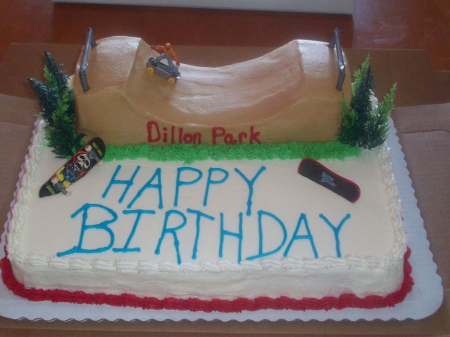 I made this for my son's best friend- the 1/2 pipe is made of cake as well!