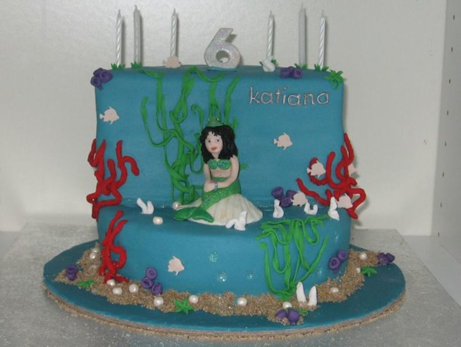 I'm glad this cake is done! It was so hard to cover. I had fun decorating it though. It is 2 8 inch mud cakes. One cut in half and stacked. All decorations are fondant. I hope you like it! Thanks for looking. Thank you to all the people on CC that have made mermaid cakes too, I found all my inspiration for this cake here!!