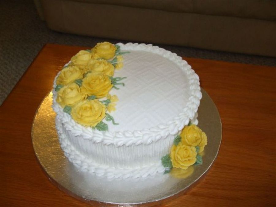 I made this cake yesterday for my husband and his co-workers, but I thought it looked so much like a Mother's Day cake that I decided to post it here. Ha ha! All buttercream.