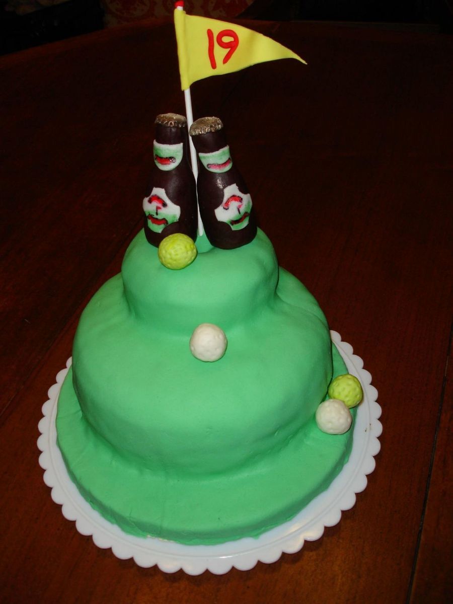 I made this cake for my dad for his birthday. My first time modeling anything. Beer bottles and golf balls are fondant. I saw this in Debbie Brown's book "Easy Party Cakes".