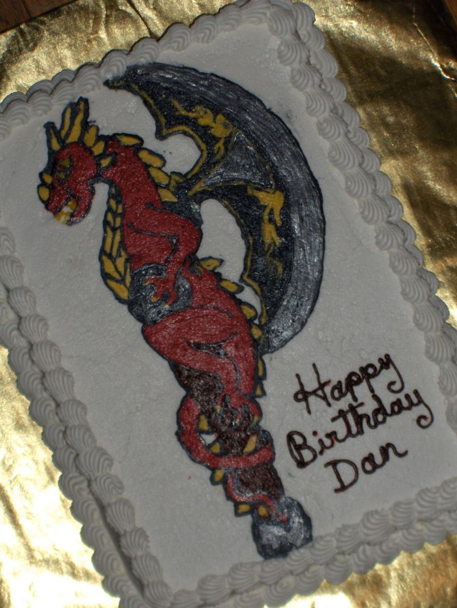 Dragon Hatchet buttercream transfer for birthday of a friend who is into D&D type stuff. Hatchet blade is painted w/edible silver dust.