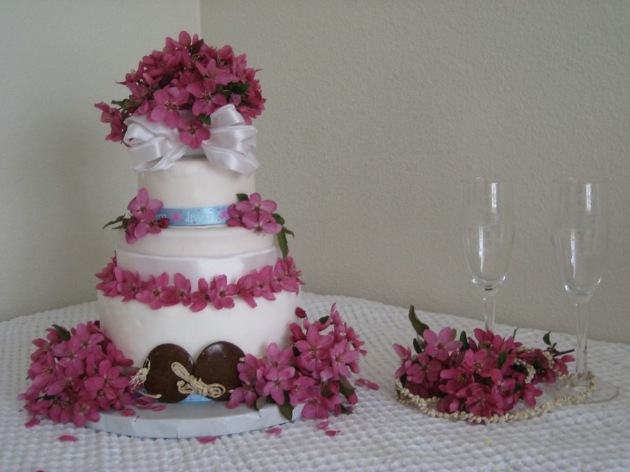 Small wedding cake setup...White cake w/ Raspberry filling and Iced in BC.