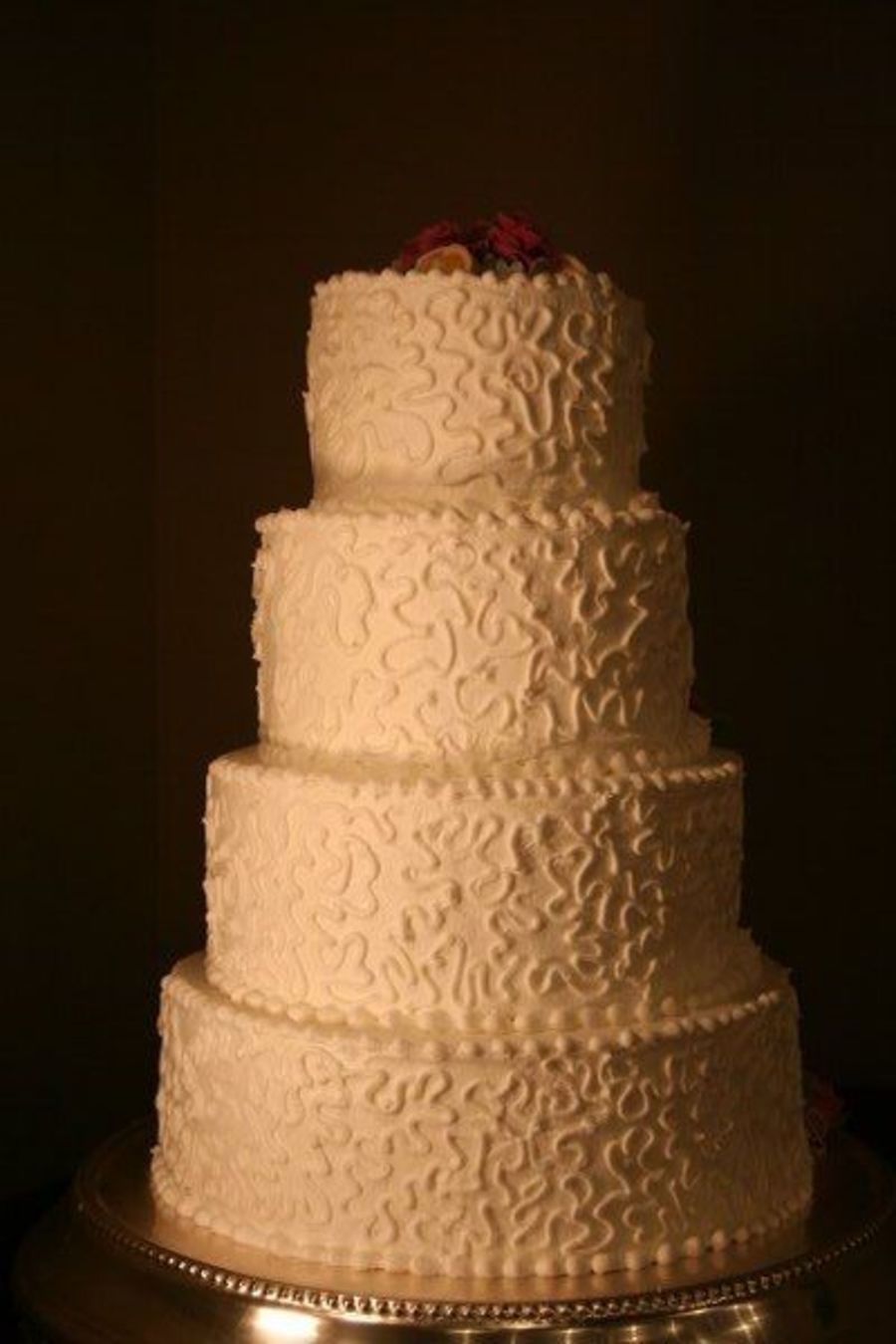 This is another practice cake with my new set of dummy cakes. I have never done wedding cakes before and am trying to get into that part of cake decorating this summer. I need help with how to get that cornelli lace more uniform. Anyone care to share their tips, I would much appreciate it. Thanks for looking.
