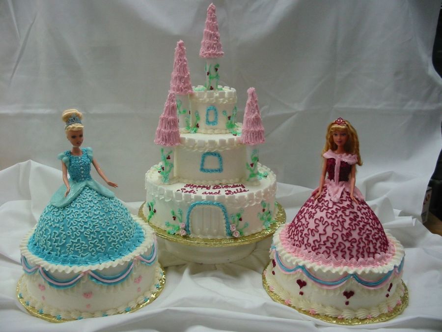 All Buttercream, decorated to match dolls original dresses.