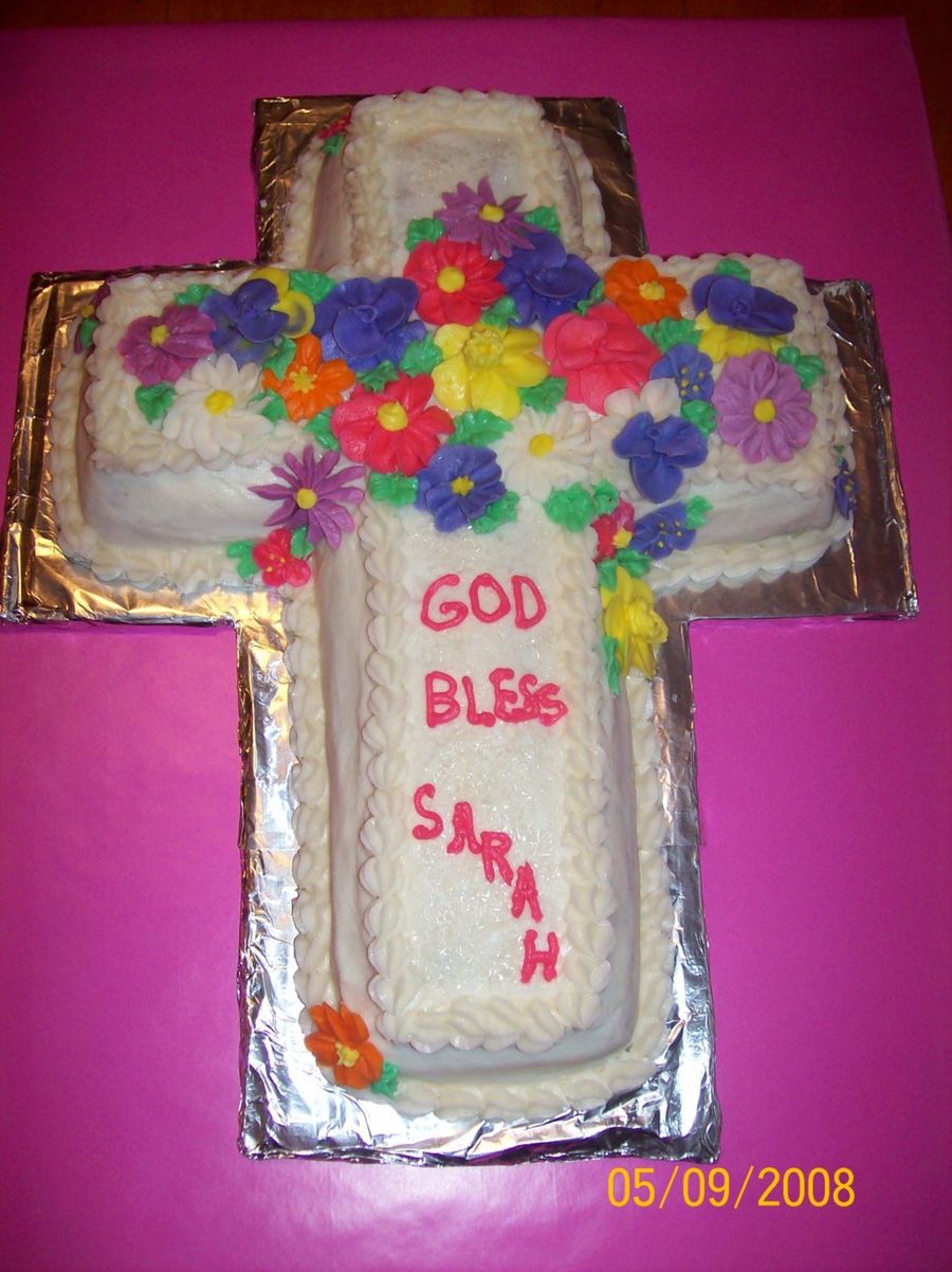 I made this cake for a friends daughter's First Communion. I used cake sparkles and then my writing wouldn't stick. I ended up scraping it off a few times. The end result was still messy but overall I was happy with the cake and they were thrilled! All buttercream.