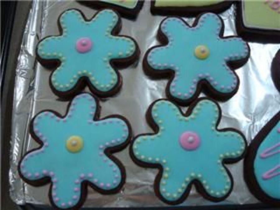 Dark chocolate rolled sugar cookies with Antonias icing.