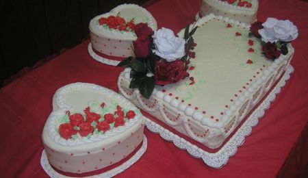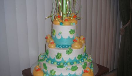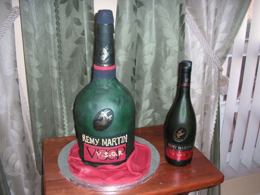 4-6" cakes and 1/2 of the sports ball pan. For the neck of the bottle I used rice krispies. Covered in fondant and painted with gold hilighter and used RI of lettering. Thanks to the members who answered my post about how to constuct the neck of the bottle. You'll tips and advice worked wonderfully.