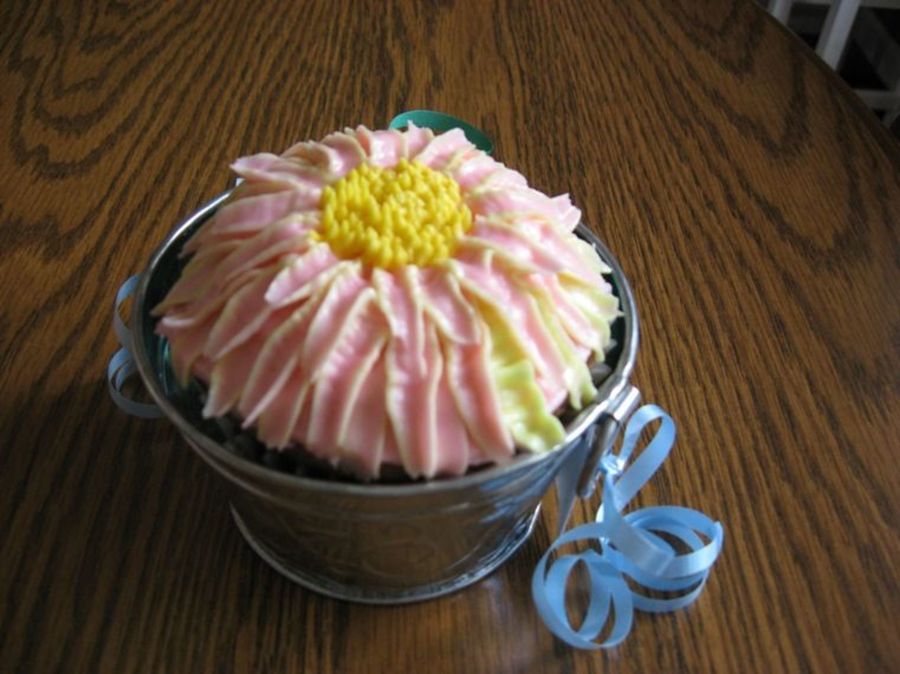 These were made for my kids' preschool teachers for the last day of school. I used the jumbo size muffin pan and stuck them in a little tin flower pot.