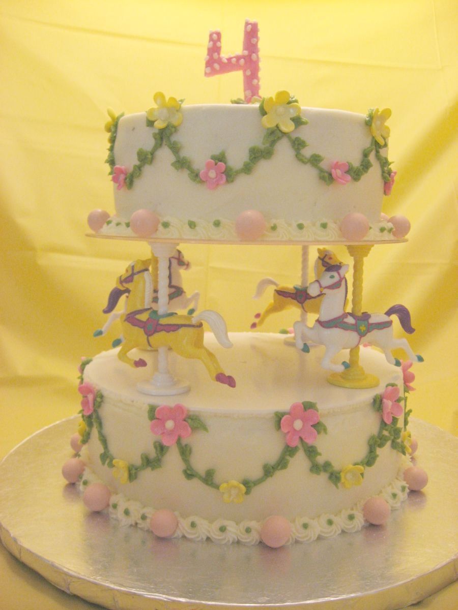 Buttercream icing with fondant flowers and number 4. pink candy balls.