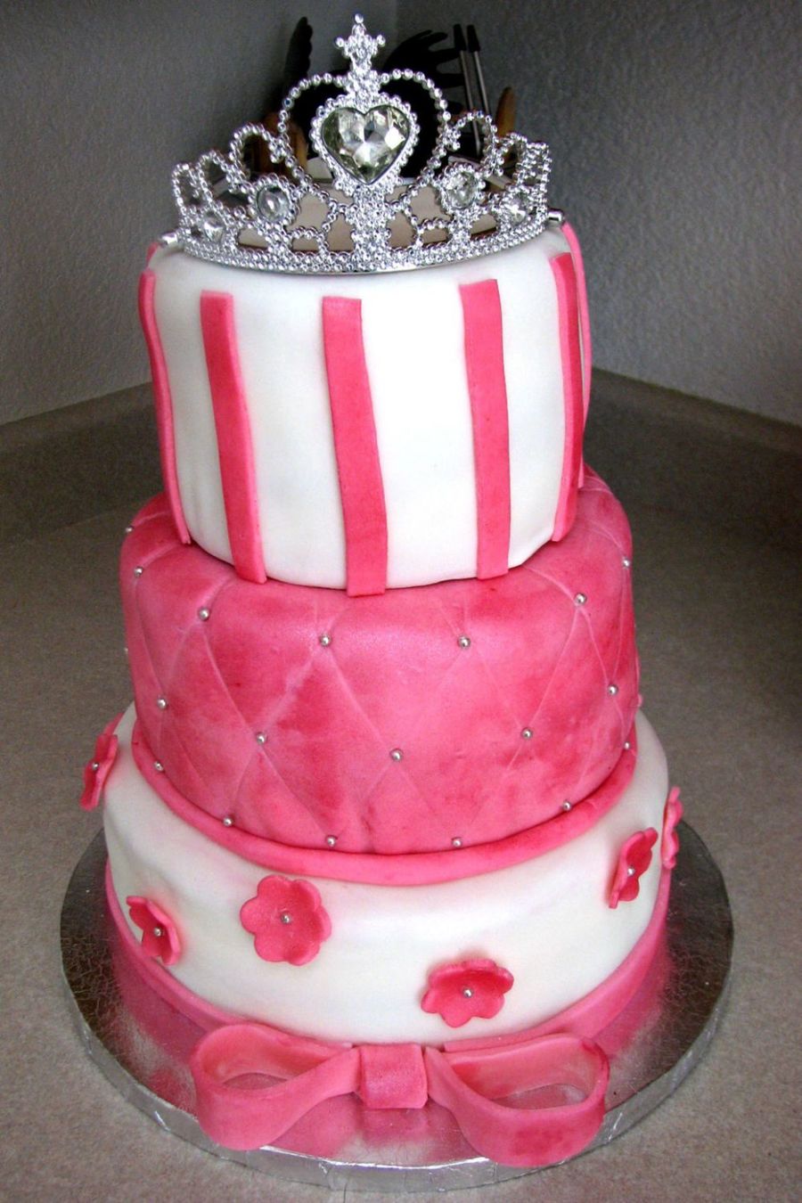 A princess cake for a 2 year old. All fondant, dusted with pink luster dust. Very fun!