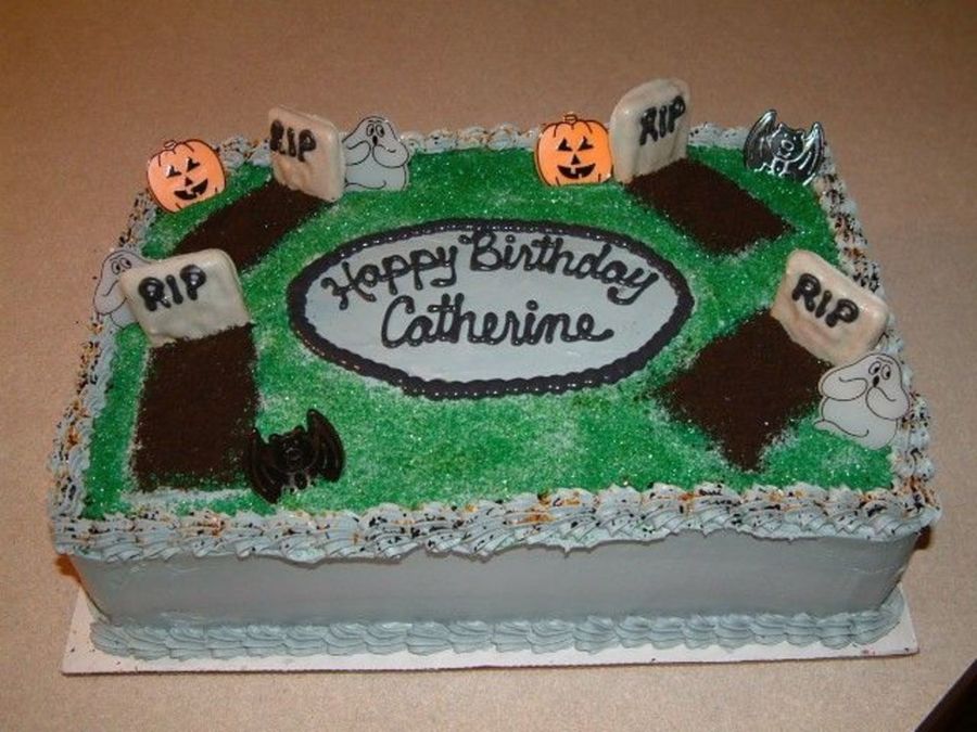 dirt is oreo crumbs, headstones are pepperidge farm "Chessmen" cookies dipped in gray white chocolate