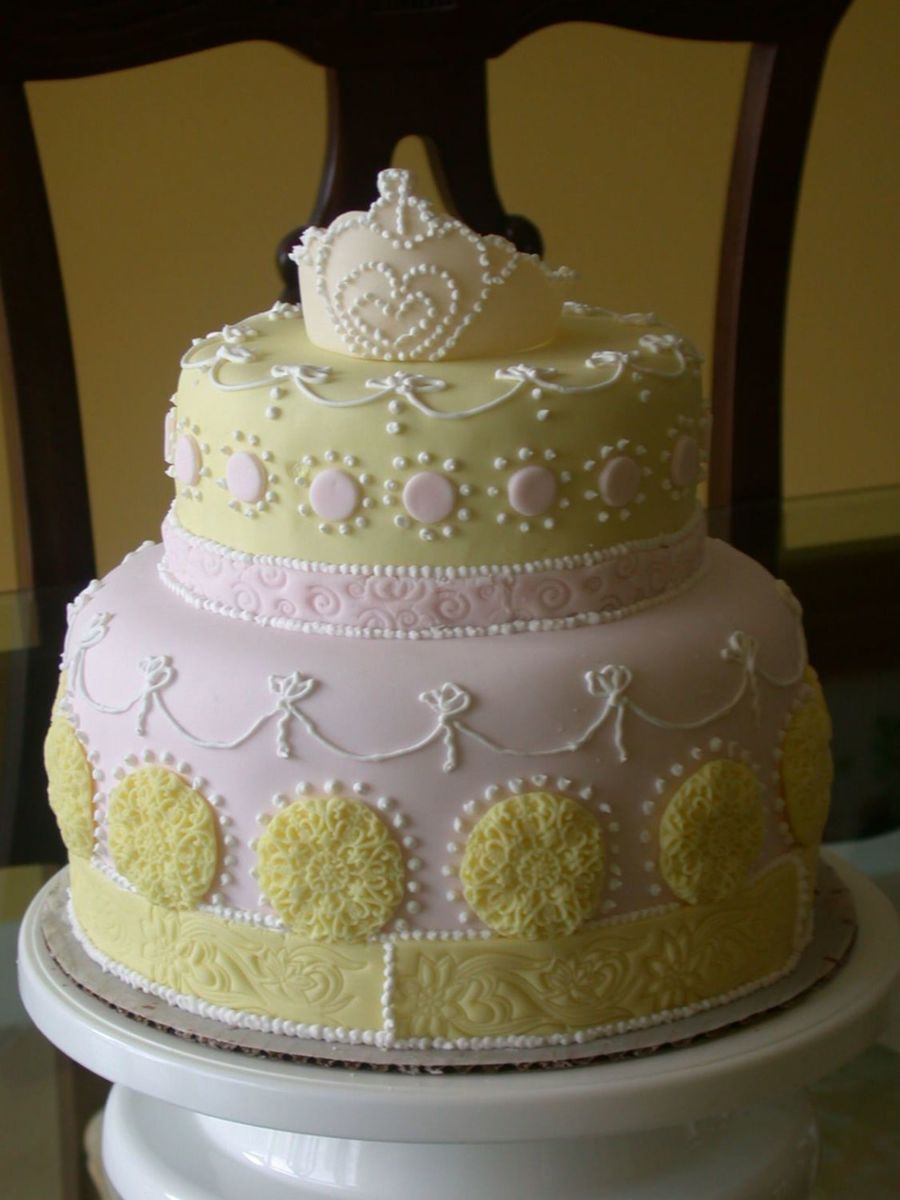 Just practicing. 9 & 6 inch devils food, filled with buttercream, covered in mmf, royal icing piping . I am still working on it. It started to lean, i did not think that it will make it before I finished it , so just wanted a pic to remember . Any advise on why it is leaning would be appreciated. I have 4 straws in the bottom tier. thanks for looking.