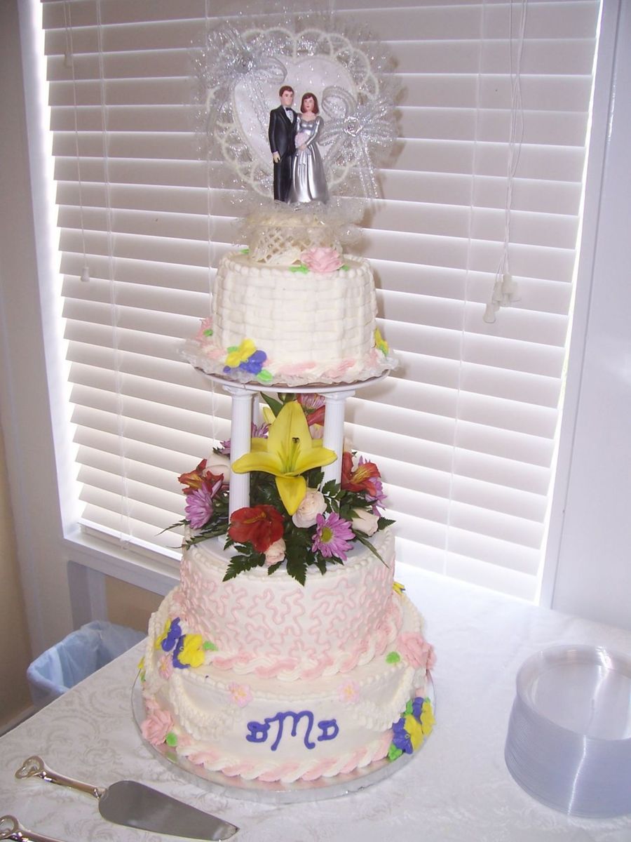 This was cake for 2nd time bride at church. The topper was the one her parents had used 40 yrs. ago