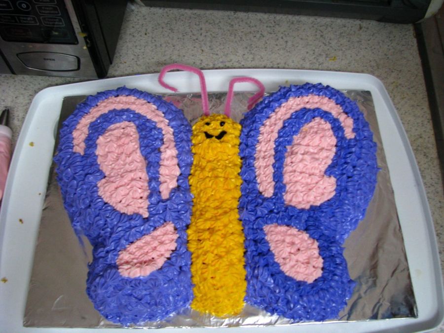 I used the Wilton Butterfly pan for this cake. I made this for me little girls first birthday party. I also made a pink one, and a ladybug smash cake.