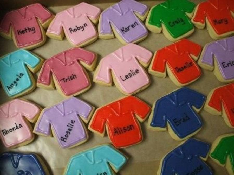 NFSC decorated with a glaze for nurses day - scrub tops with each nurses name on them.