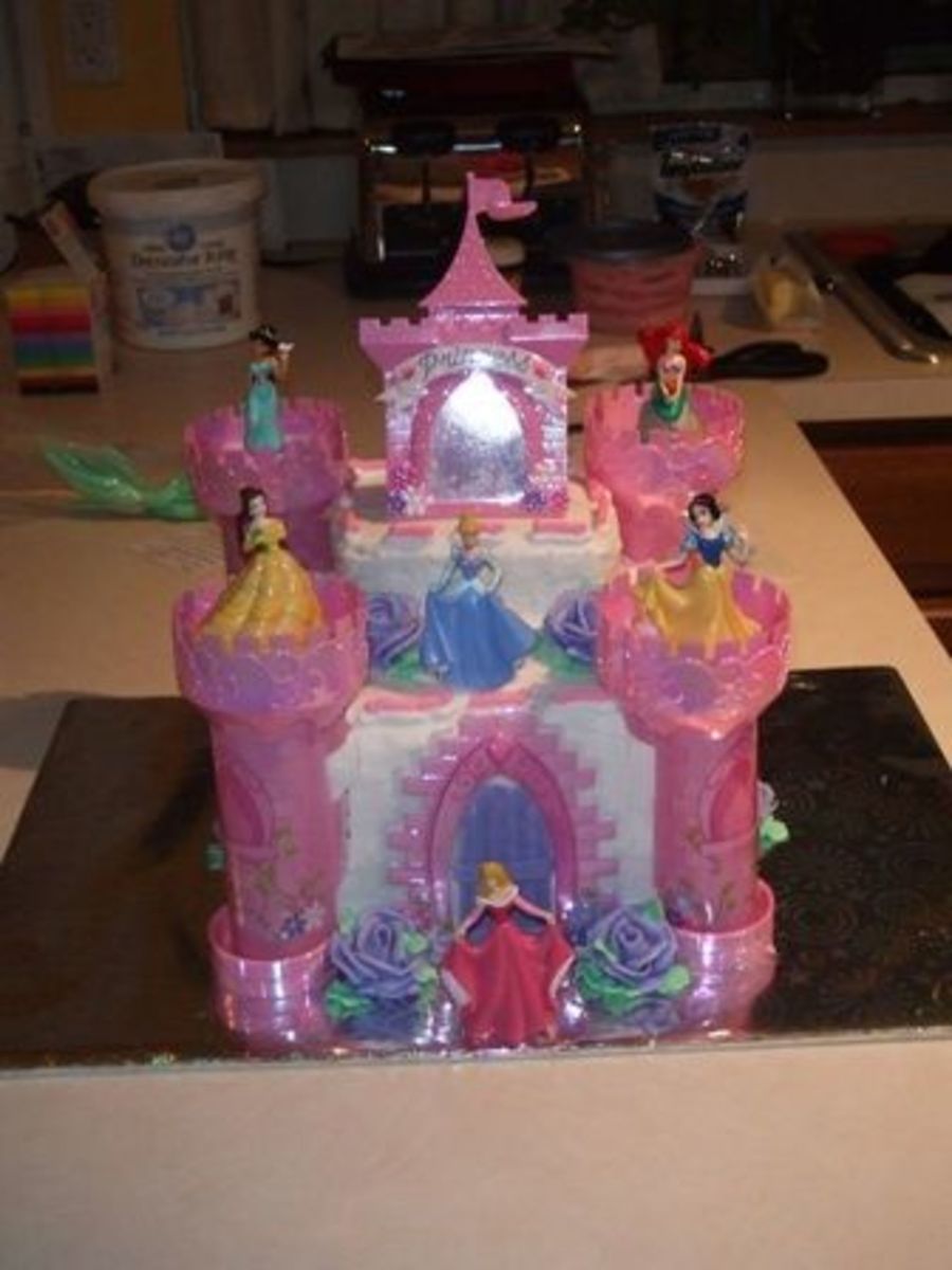 I made this for a friend's daughter's Brithday. I used the Wilton Disney Princess Castle Cake deco kit. I had some serious catastrophes with this one due to the humidity but it turned out okay. It was actually kinda fun. Everything is done in BC except the flowers are royal icing.