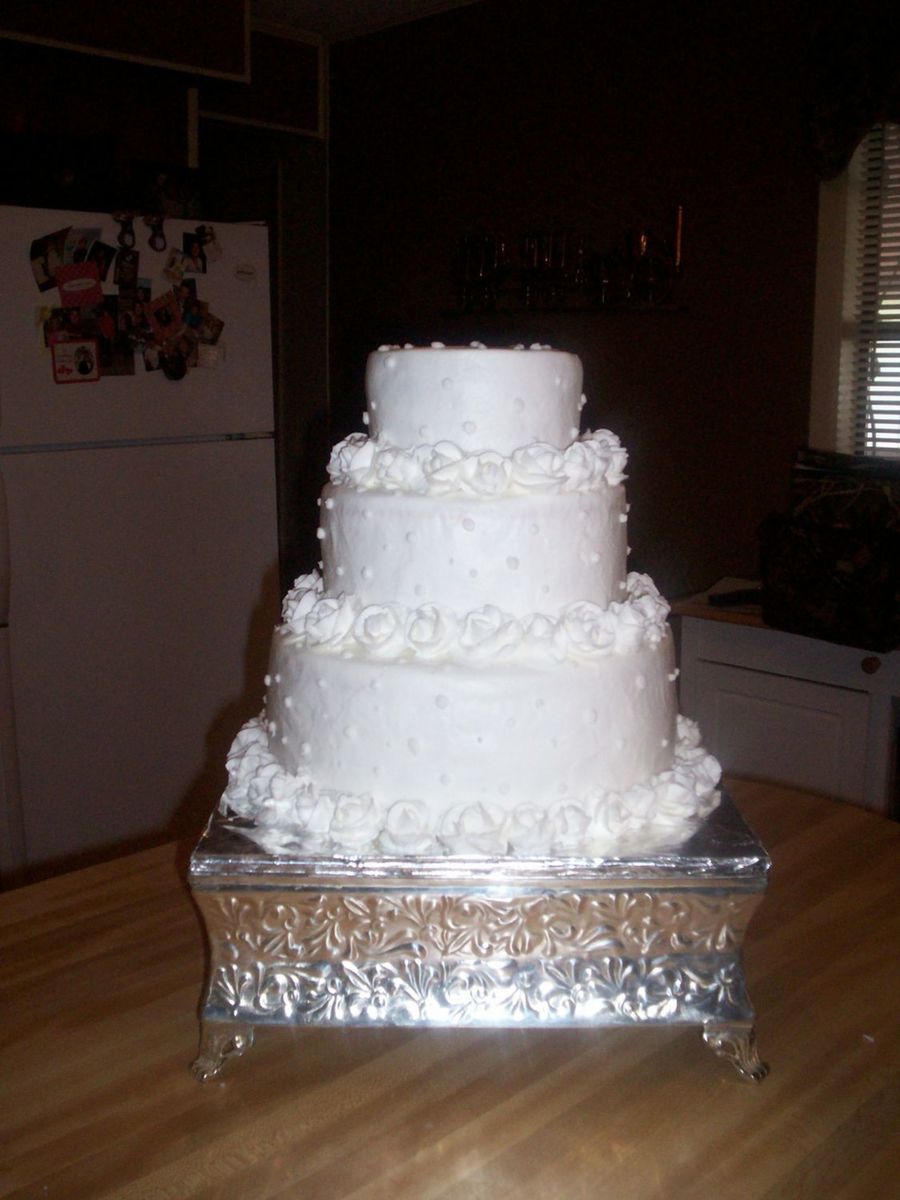 I am so disappointed in this cake. After I smoothed it and it set over night it started looking rough. It is made with Chocolate DH mix. Now an hour before my friend is to come and get it I notice it is oozeing choc. from underneath the bottom layer of roses. This is the 1st and maybe the last chocolate stacked cake I do. My other wedding cakes did not do this. But they were white though. You can look at the pink polka dot wedding cake and the fondant roses one in my pics. What Happen???