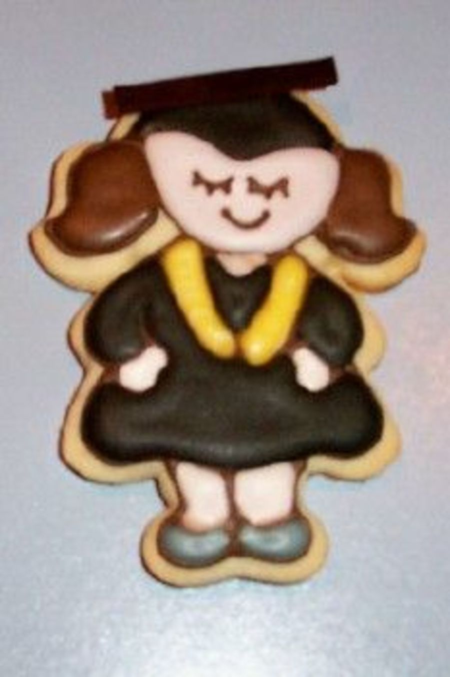 I made these for my daughter, graduating with honors (yellow scarf). I added a small strip of chocolate Pettinice for the mortarboard.