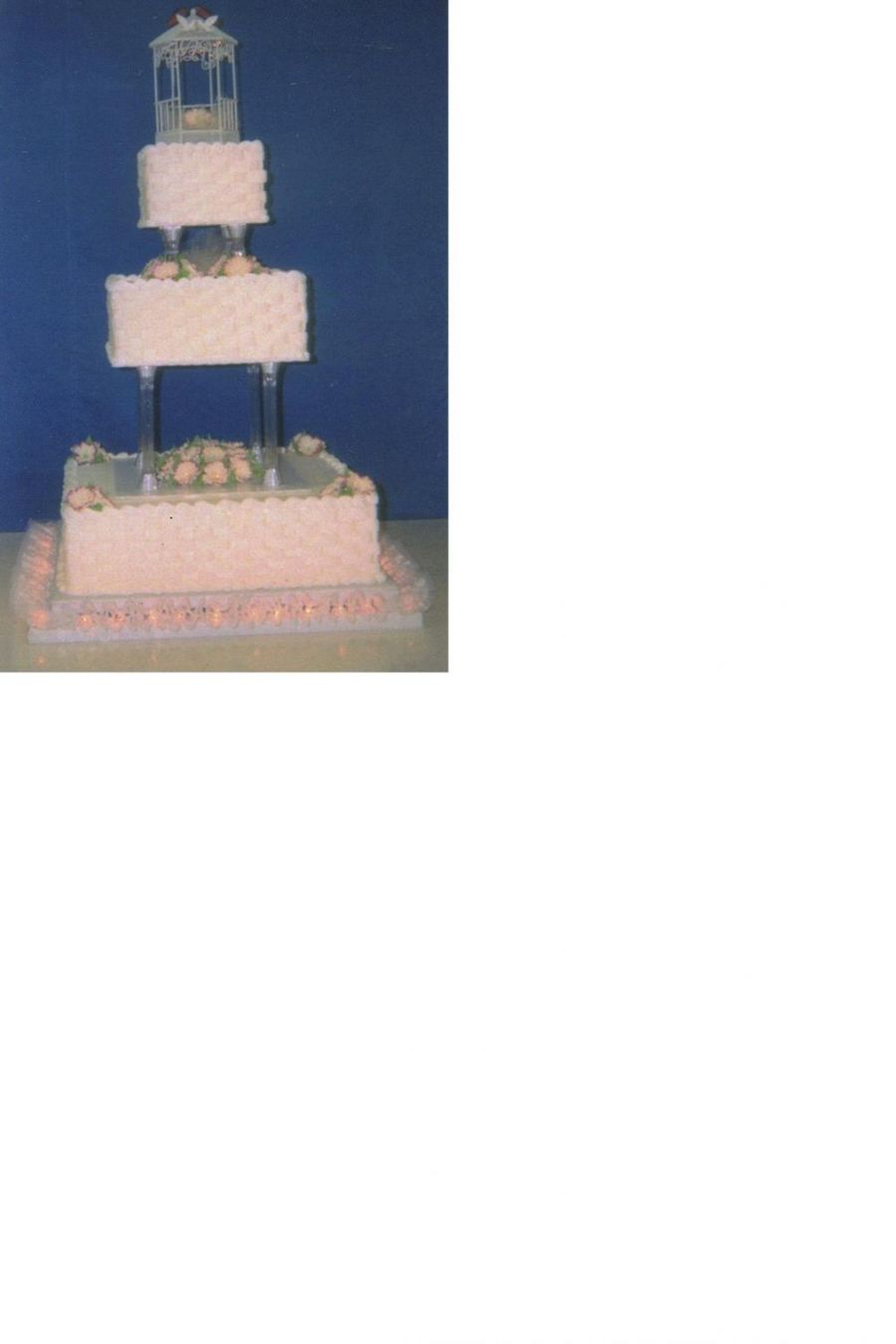Dummy Cake. The board has lights and the flower cluster has lights. They are made out of royal icing.. Also my first basket weave.