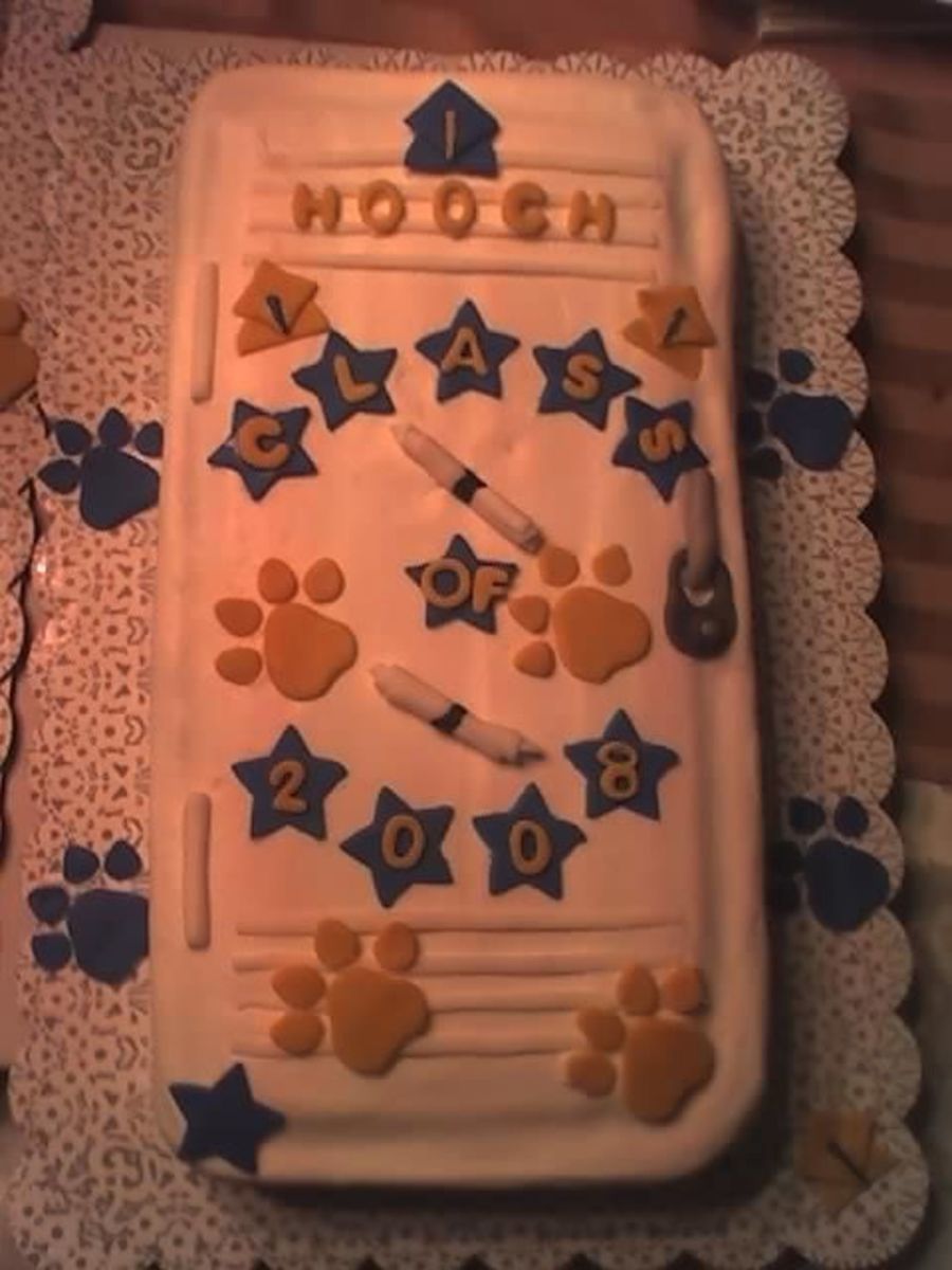 For a graduation lock-in party. I made 2 of these - 16 X 8, chocolate cake buttercream icing and fondant accents. Lots of fun to make and I made 108 2.5 inch round cookie cakes.decorated with buttercream.