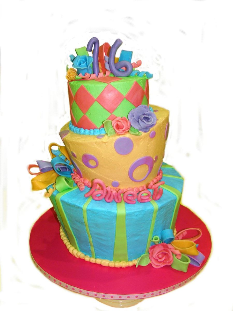 I used white icing and whipped it maybe a bit too much...I couldn't help the holes in the icing but, the birthday girl designed this cake (even bigger!!) but, they weren't needing to feed more then 20-30 (yes, this is all cake! Good luck, guys hehe.) Gumpaste roses, ribbons and numbers/letters and fondant extras TFL!