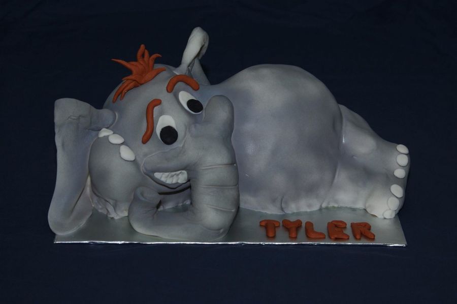 Here's my attempt at making Horton. He started off as 3-9x13 cakes and then I just got the knife and prayed that it would look like an elephant! Covered with fondant and airbrushed.