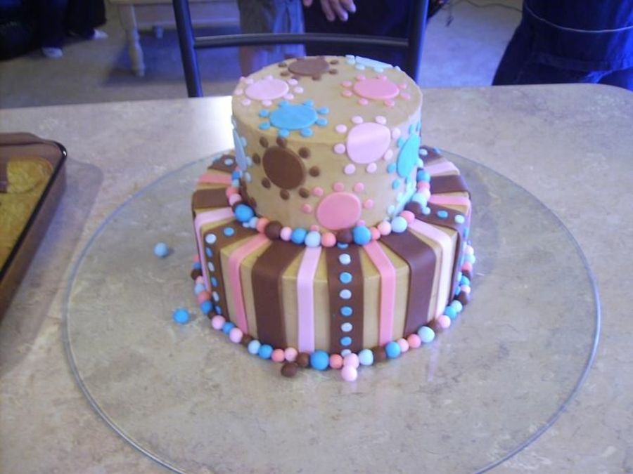 6/9 white with buttercream filling. Buttercream icing tinted brown. All accents are fondant