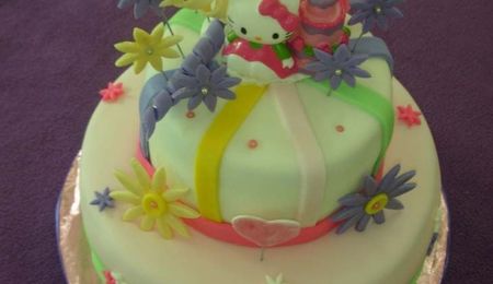 This was my first fondant and tiered cake cake and also my daughter's first communion cake. . I got the idea from a Wilton book. It's very similiar. I was really happy with it even though I damaged some of the garland design while transporting