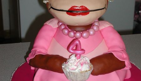 This was made for the little girl I made the monkey princess for last year. The top is chocolate and the bottom is banana creme with strawberry filling. The shells and starfish are chocolate and bubbles are something I found at Hobby Lobby. Everything else is fondant. I used a mold to shape her face.