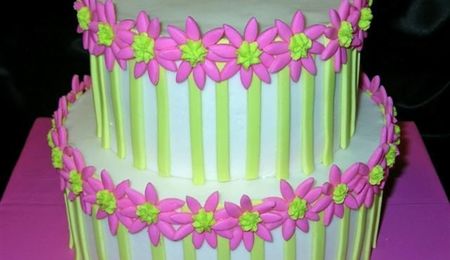with watered down yellow icing color. Used 9 in and 7 in round cakes.