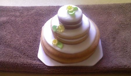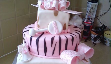 White cake with fondant accents. Saw a cake similar to this on CC and switched it up with color. The mom to be wanted all pastels.