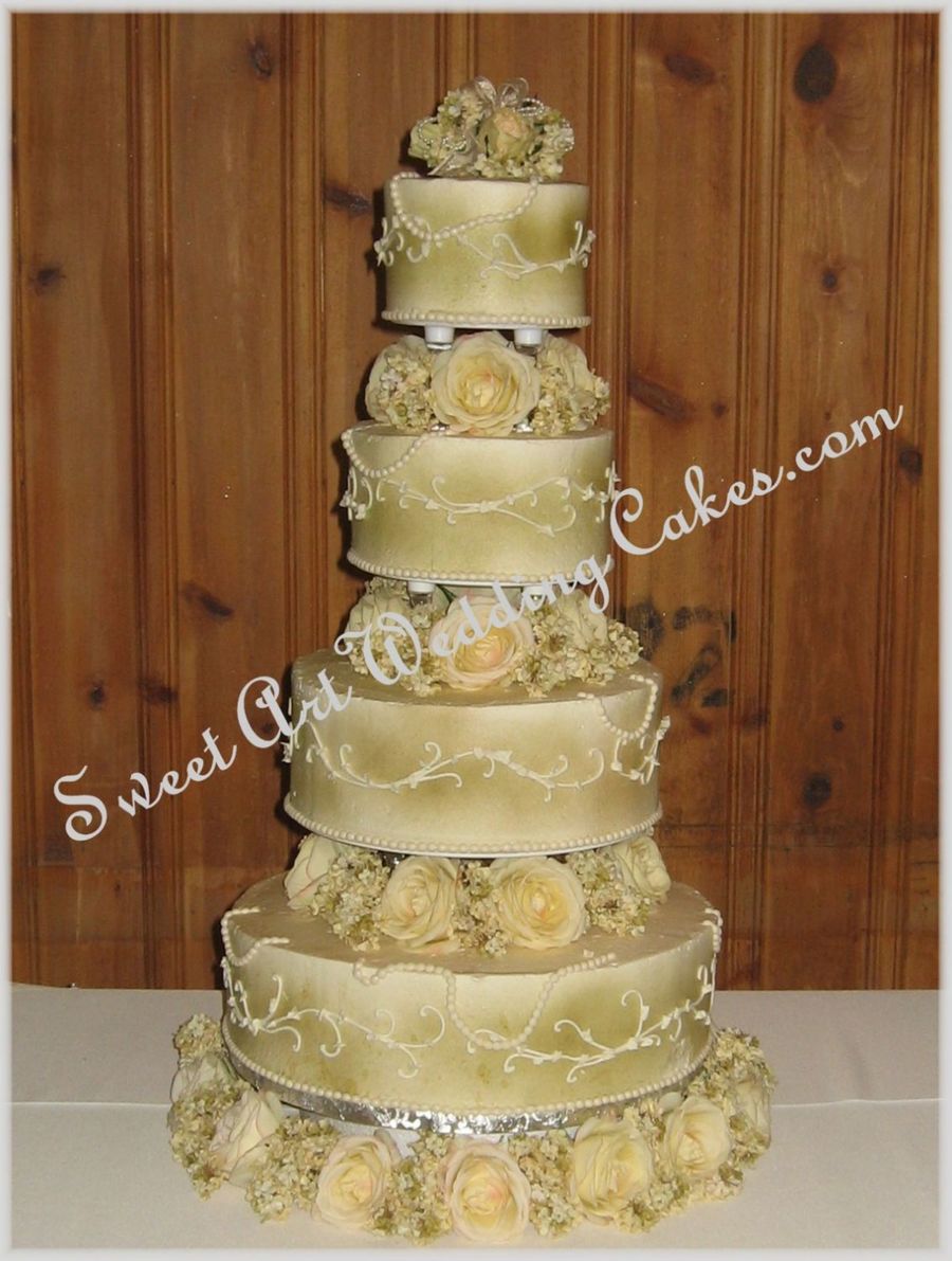 Airbrushed then hand piped with fondant pearls.