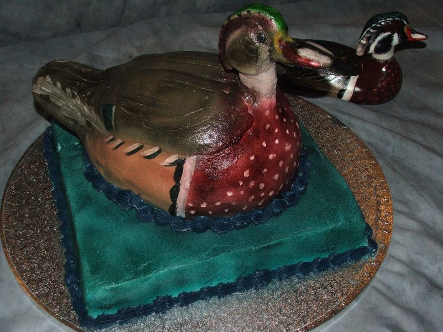 this cake is a replica of a duck decoy that a customers father carved. it is airbrushed buttercream.