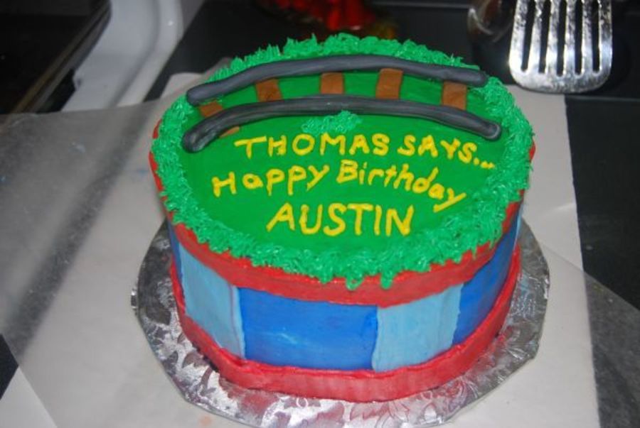 thomas cake in bc with fondant track- bday boy had the train to put on