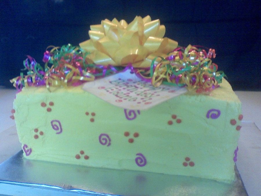 Ordered by a man for his wife's birthday. He didn't know what he wanted... mentioned something plain... I'm not good with really plain cakes so I suggested a cake to look like a birthday present... he liked it! Always love the easy to deal with customers!!!!