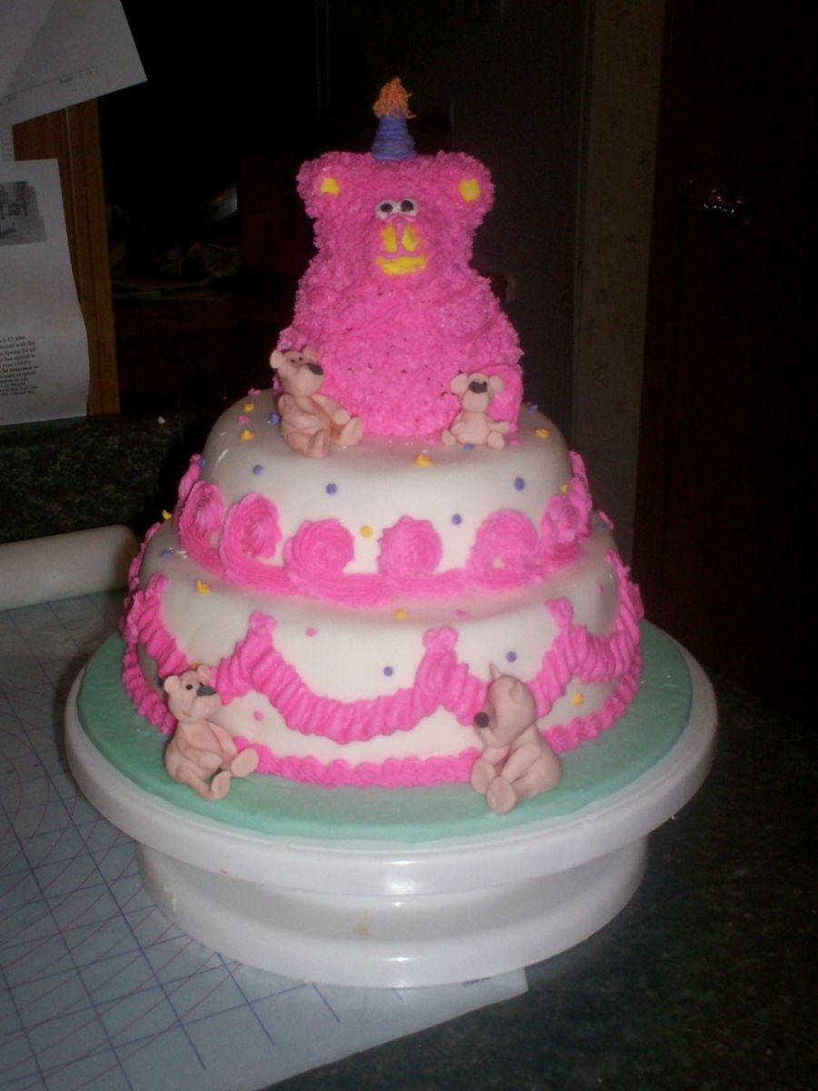 This is for my niece's first birthday. Covered in fondant and buttercream.