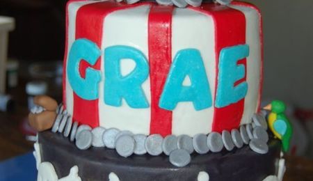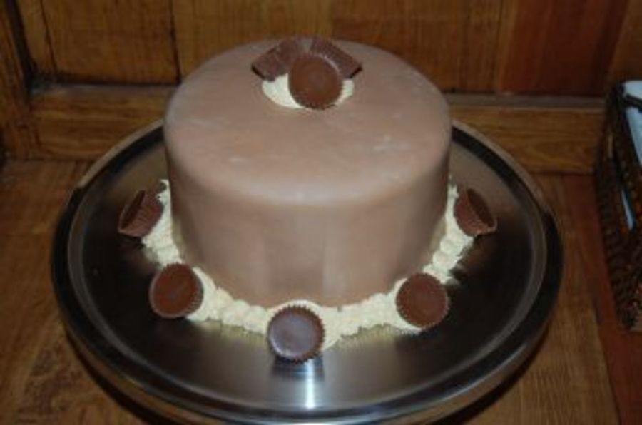 My 2nd fondant cake ever! Chocolate MM fondat, chocolate cake peanut butter filling. Certainly was a hit with a chocolate/peanut butter loving hubby!