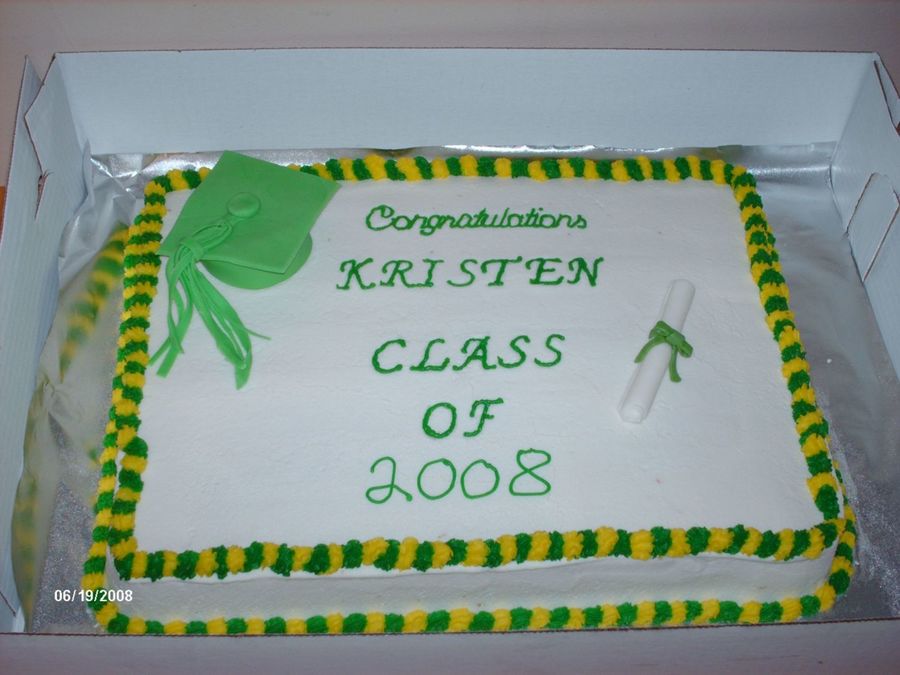 This cake is white pound cake with buttercream frosting. The diploma is made of MMF and the graduation cap is made of MMF/Gum Paste.