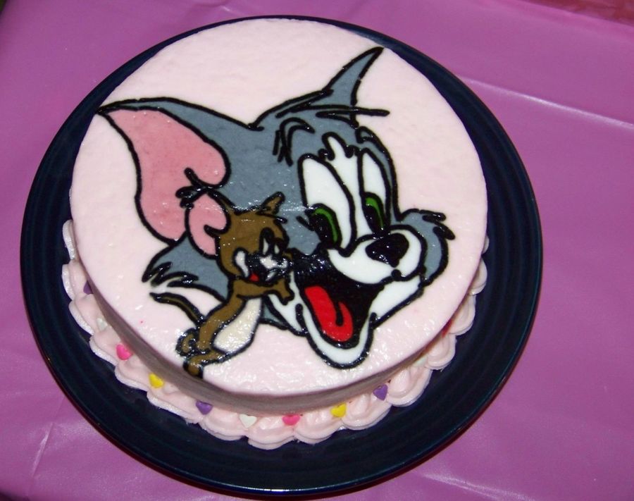 This was the smash cake to go along with her Tom & Jerry theme. Cake is marble with a FBTC transfer for the top. Confetti sugar hearts around the bottom border to make it more "girly".