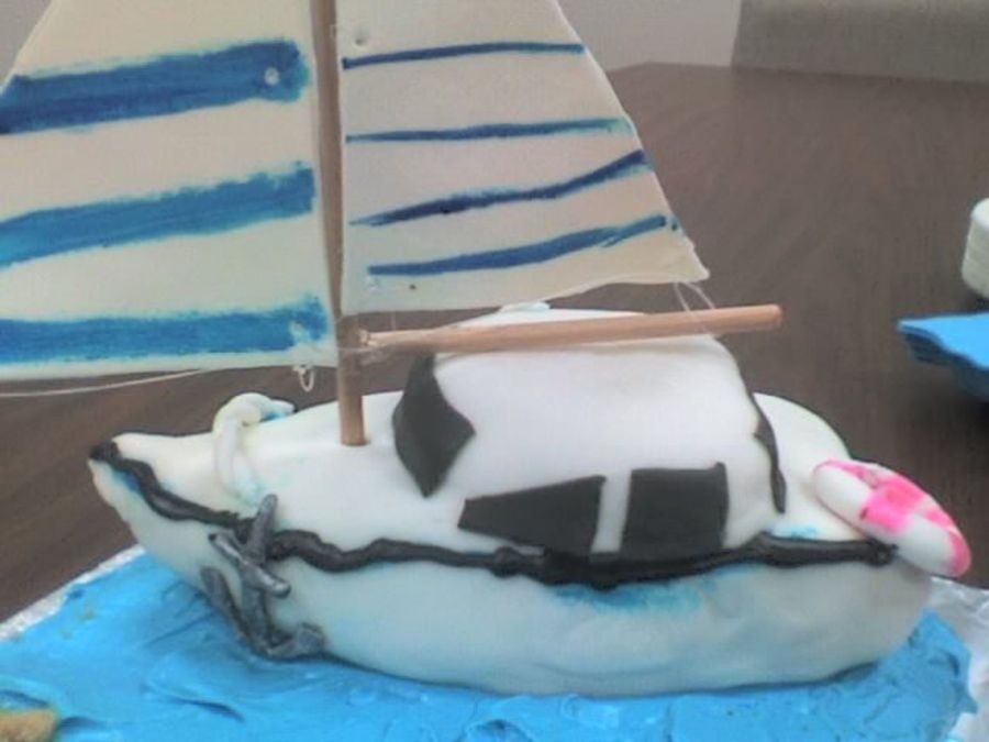 This is RKT sailboat covered in fondant with gumpaste sails tied with fishing lines