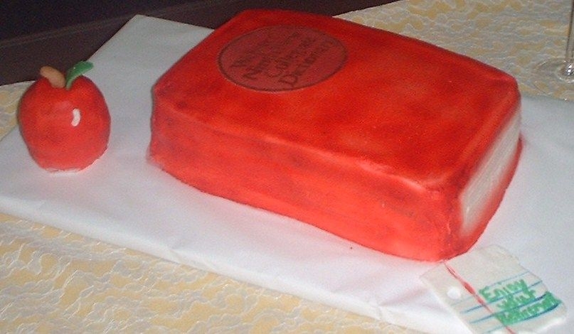 This is another cake from the teacher retirement. It is a 2-layer 9x13 chocolate cake. The apple is a 2-layer cupcake.