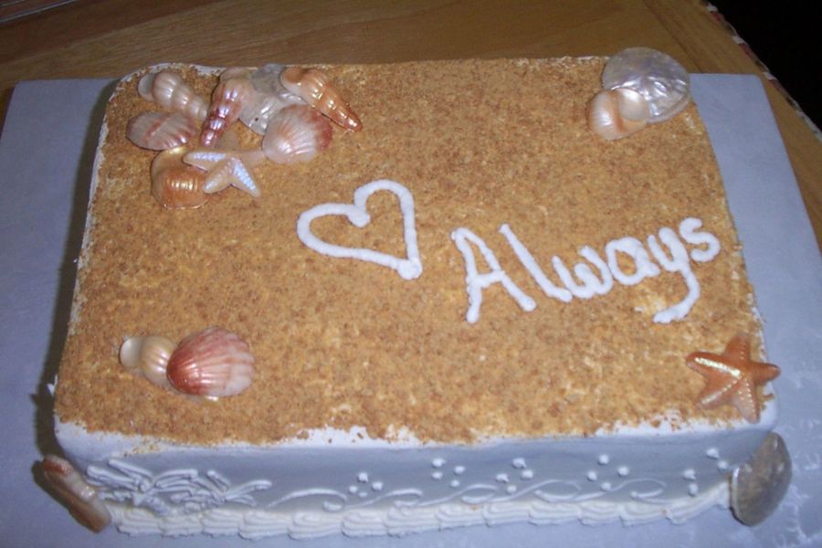 White chocolate shells with luster dust. Sand is crushed graham crackers.