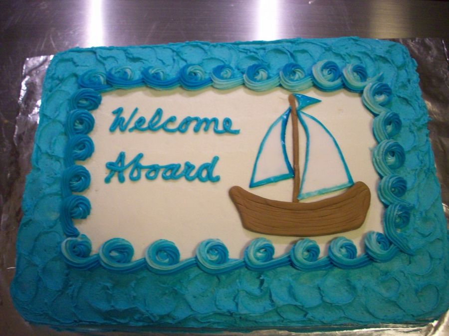 This cake was made for work to welcome the new boss. It was white cake, with strawberry filling and butter cream icing.
