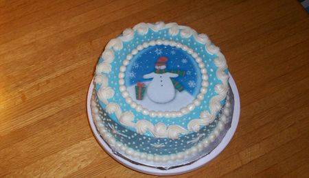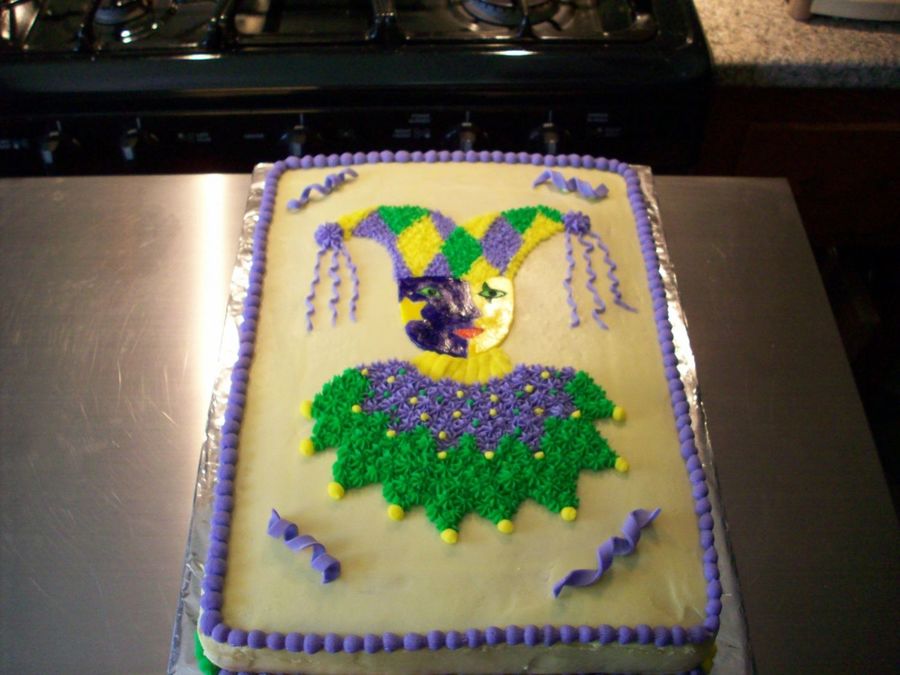 Yellow cake, butter cream icing, painted on fondant for the face.