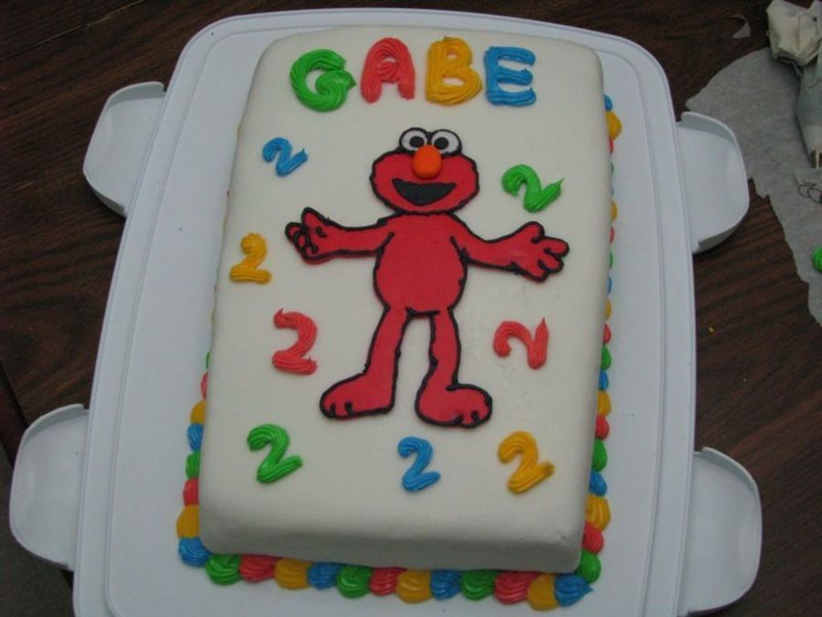 I made this one for my son's 2nd birthday, he was quite happy with it! fondant covered, and elmo is fondant too, with some royal icing.