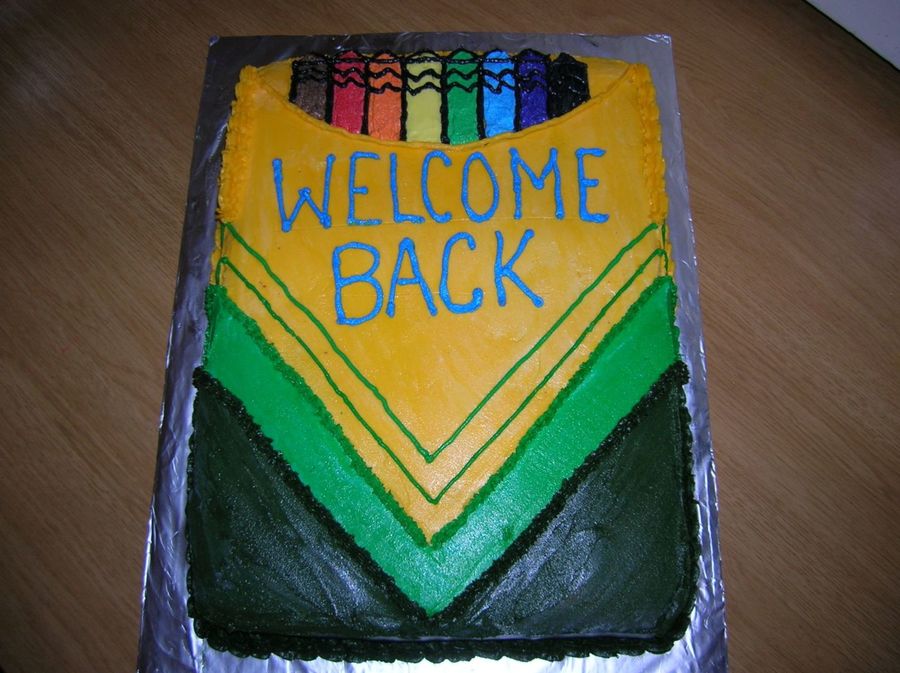 Got the idea here at CC from the gallery. I created it for a first day back to school welcome. I went over quite well. I spent most of the nite mixing colors and icing it. I like the end result.
