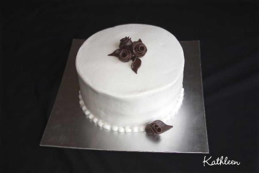 A quick cake for my brother's birthday. BC icing and chocolate fondant roses.